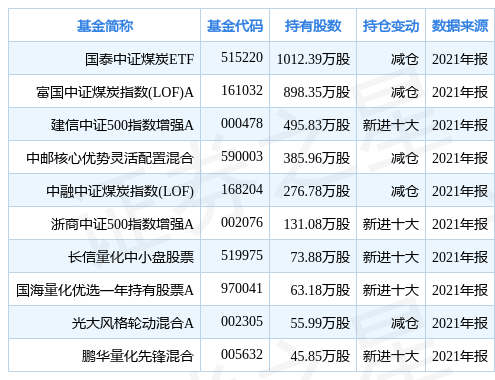 3月9日潞安环能(601699)(601699)涨5.81%,收盘报16.38元。根据2021年报基金重仓股数据,重仓该股的基金共16家,其中持有数量最多的基金为国泰中证煤炭ETF。国泰中证煤炭ETF目前规模为30.16亿元,最新净值2.135(3月8日),较上一日下跌5.56%,近一年上涨65.48%。