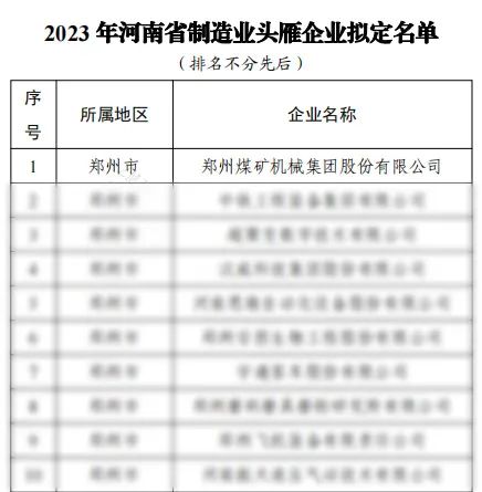 7月24日,河南省工业和信息化厅公示了2023年河南省制造业头雁企业以及2023年河南省制造业重点培育头雁企业名单,郑煤机集团连续三年入选河南省制造业头雁企业。
