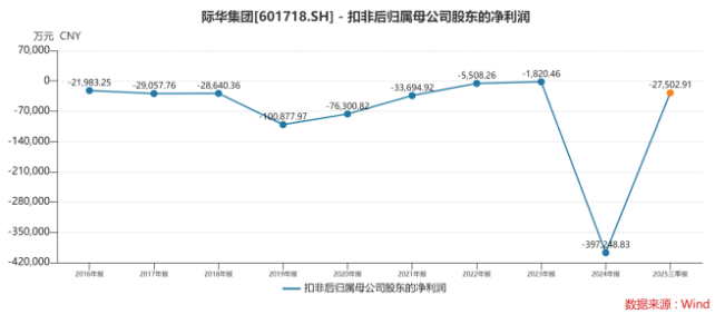 在历经2024年巨亏逾40亿元后,老牌军需企业际华集团(601718.SH)目前仍未走出业绩低谷。公司近期发布的2025年业绩预告显示,预计归母净利润亏损3.5亿元至2.5亿元;归母扣非净利润亏损5.25亿元至4.25亿元。尽管亏损额较上年同期呈现收窄,但这已是公司连续第十一年扣非后净利润为负值。
