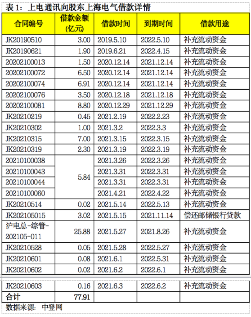 另外,我们从一份上电通讯向股东上海电气借款表或许也能捕捉到一些信息。