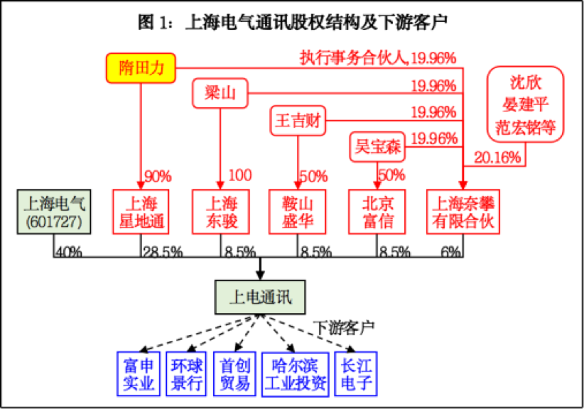 在上海电气的财务爆雷案中,导致其83亿元利润损失的子公司叫做上海电气通讯技术有限公司(下称“通讯公司”),上海电气持有通讯公司40%股权。通讯公司的第二大股东为上海星地通通信科技有限公司(下称“上海星地通”),持股比例为28.5%,上海星地通的实际控制人就是隋田力。