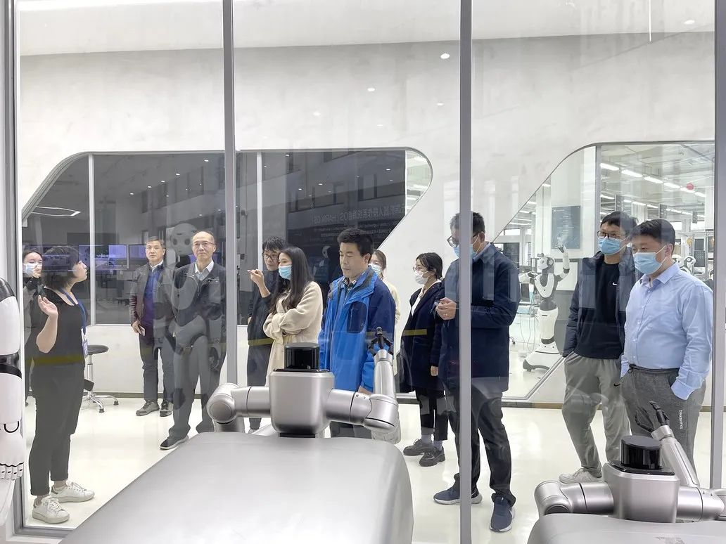 随后,调研组继续走访达闼公司,实地参观了达闼的展厅及车间,了解了云端智能服务机器人、云端智能清洁机器人、室内外多功能云端机器人、云端售货机器人、云端智能虚拟机器人等系列产品,重点听取教育板块、研发及其工艺板块的介绍,对达闼践行的“云端智能连接未来”发展理念有了更深刻的认识。