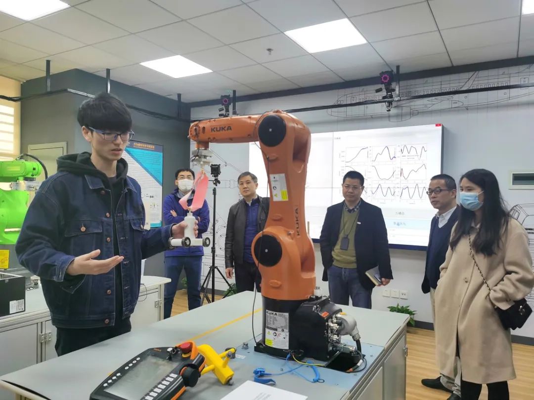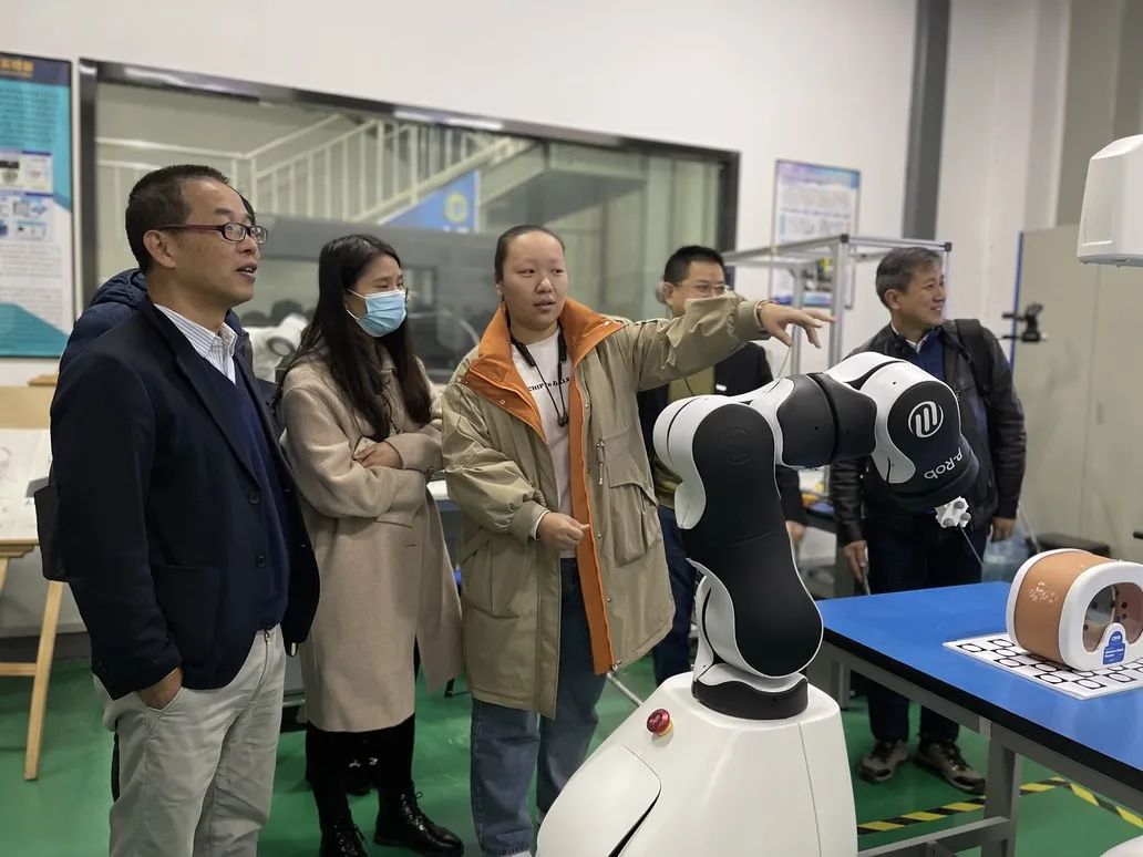 在上海大学智能制造及机器人重点实验室,调研组参观了智能数控装备与工艺、精密测量、智能装备设计与仿真技术、智能服务机器人控制等多个实验室,并与小型足式仿生机器人系统、智能画像机器人、智能介入手术穿刺机器人、柔性机械手臂等研究团队开展技术交流。