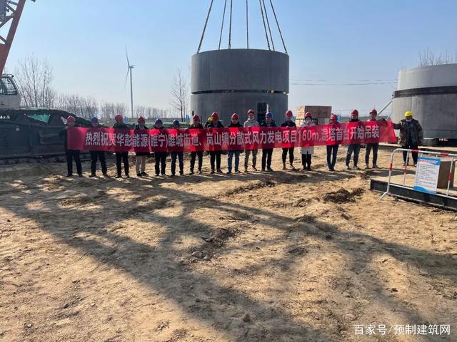 该项目位于江苏省徐州市睢宁县,目前属于国内最高,是首个批量使用160m混塔方案的风电场项目。项目总装机容量33.3MW,拟安装10台单机容量3.3MW的大叶片、低风速风力发电机组。风机轮毂高度160m,塔筒下部混凝土段高101.64米,由34层预制混凝土塔筒组成;塔筒上部钢塔段高55.16m,由过渡段及2节钢塔组成。
