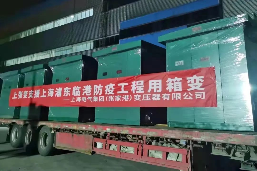 3月29日,上海电气集团(张家港)变压器有限公司接到上海电力公司紧电,需要为浦东防疫工紧急作提供多台500kVA标准化箱式变电站。公司连夜组织人员分头落实。突击队员们在短时间内对12台产品进行出厂前再维护、再检验,确保产品质量可靠。次日凌晨时分,首批载有12台“上海电气”标识的箱式变电站的货车奔赴上海浦东防疫工程基地,并于3月30日上午8点抵达现场。第二批追加的10台已于4月1日送抵上海,第三批箱式变电站最快将于今天送达上海。
