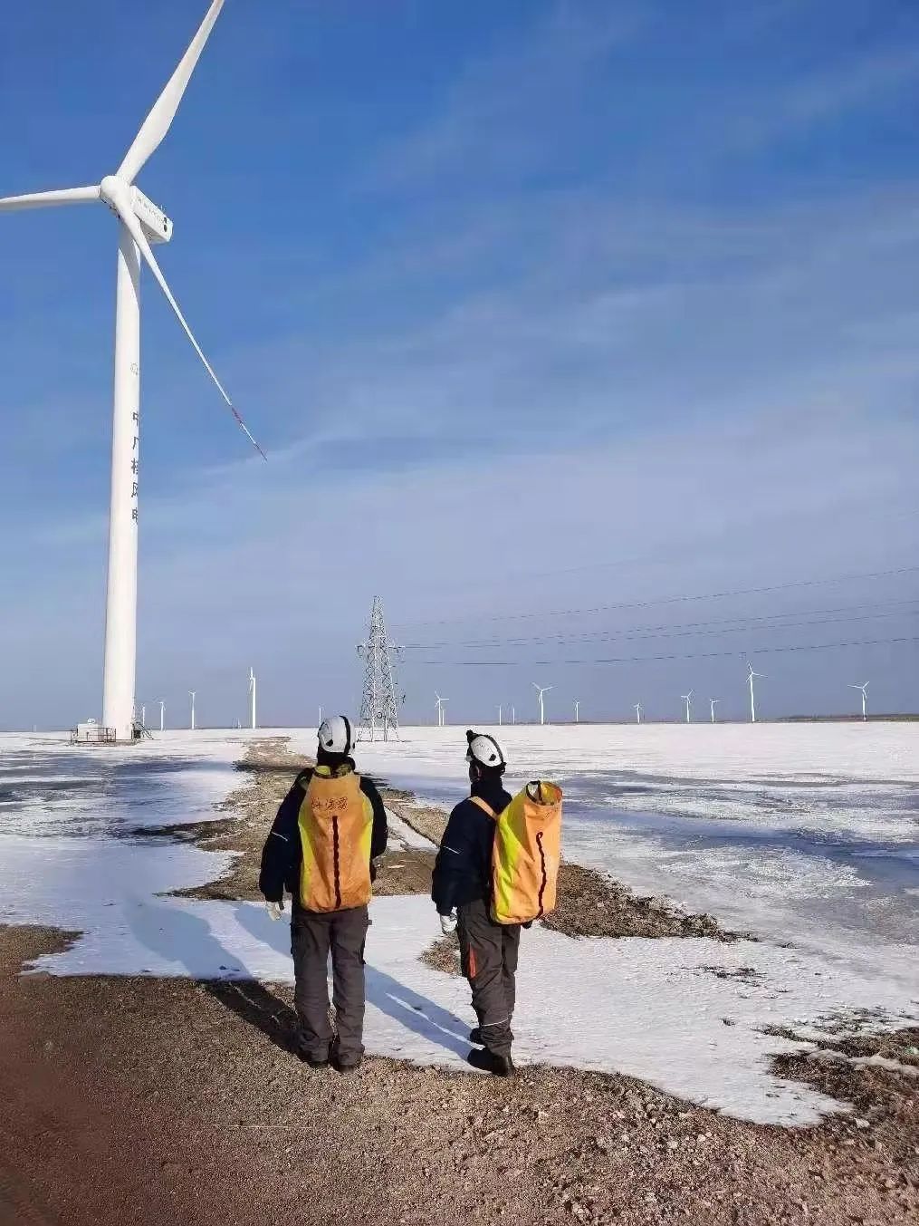 在东北地区疫情形势同样十分严峻的吉林省,项目团队取消休假、放弃休息,对各风场的风机进行全面细致巡查,今年前三个月区域内设备机组运行稳定,设备可利用率达到99.8%。位于黑龙江省齐齐哈尔的富拉尔基项目计划今年完成20台最新的WE4N型风机,该机型吊装技术难度较大,一线员工克服严寒和疫情的双重考验,与时间赛跑。4月以来,项目员工在全力做好防疫措施的同时,掀起了整机安装建设的热潮。而在华北地区,华电山东台儿庄项目附近的各村庄周边道路因疫情已全部封闭,为确保机组的正常运行,现场作业人员背上安全带、拎着工具箱,翻山越岭徒步赶赴机位进行作业。