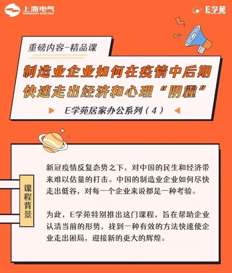 ●除了这些“专家处方”,还有“地道膏方”。上海电气输配电集团SuPer书苑开展“疫情期间远程办公的情绪与能量管理”线上专题讲座,从重新定义居家办公、提升身体能量的合理设计、情绪压力模式下的自我保护、心理能量提升的方法等角度,为大家提供提升居家办公效率和做好心理建设的有效建议和方法。