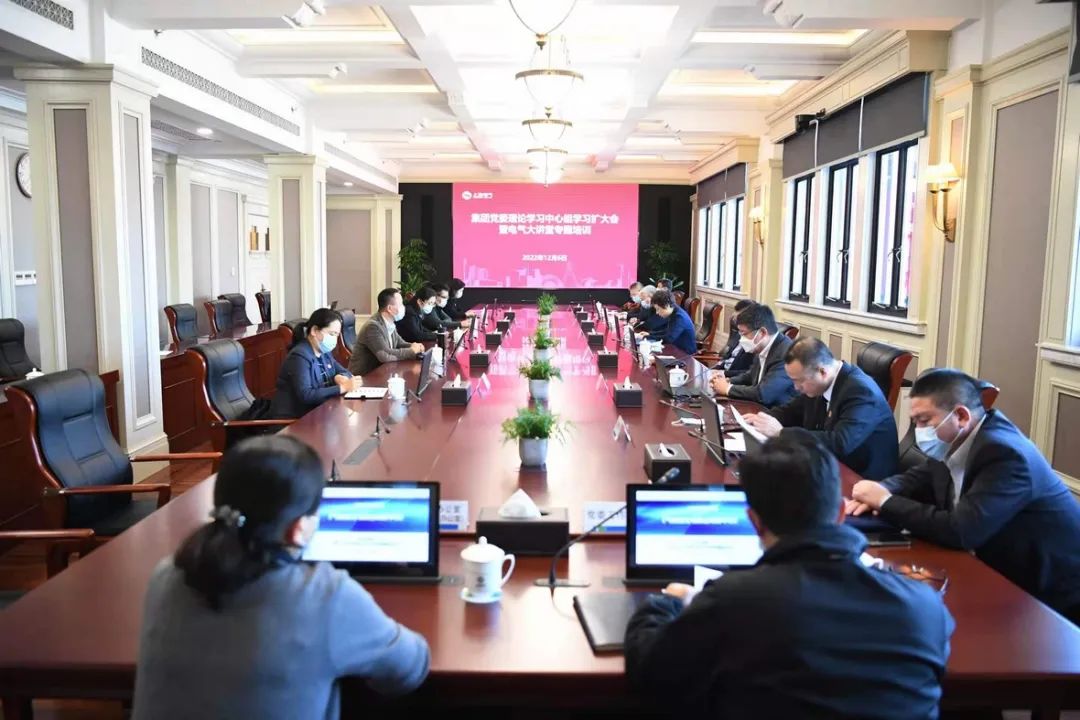 为深入学习贯彻党的二十大精神,助力集团绿色低碳转型发展,12月6日下午,上海电气集团召开党委理论学习中心组学习扩大会暨电气大讲堂,聚焦“碳达峰、碳中和”开展专题学习。上海电气集团党委书记、董事长冷伟青主持并交流学习体会,上海电气党委副书记、总裁刘平,监事会主席蔡小庆参加学习。