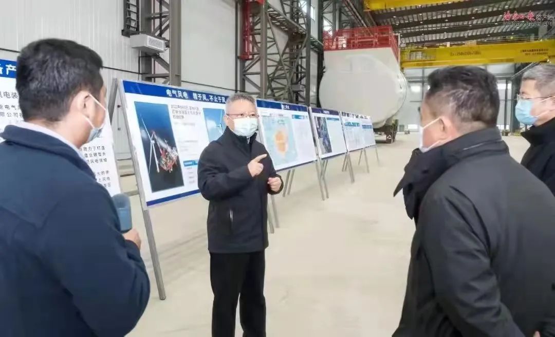 农历兔年新春前夕,海南省委书记沈晓明赴儋州调研环新英湾地区规划建设工作,并视察洋浦申能电气风电新能源装备产业项目。2022年1月初,上海电气风电集团股份有限公司与洋浦国际投资咨询有限公司、申能股份有限公司签署投资协议,洋浦申能电气风电新能源装备产业项目正式落户儋州洋浦,并参与海南自由贸易港建设项目2022年度第一批集中开工活动。时隔一年,该项目于2023年1月10日下线首台风力发电机组,这也是儋州洋浦史上首台本地造的风电主机设备。