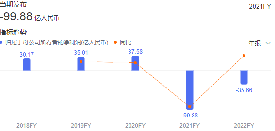同时,上海电气2021年业绩也明显受损。2021年上海电气业绩下滑,全年实现营收1306.81亿元,同比减少4.29%;实现归母净利润-99.88亿元,上年同期净利37.58亿元,由盈转亏。