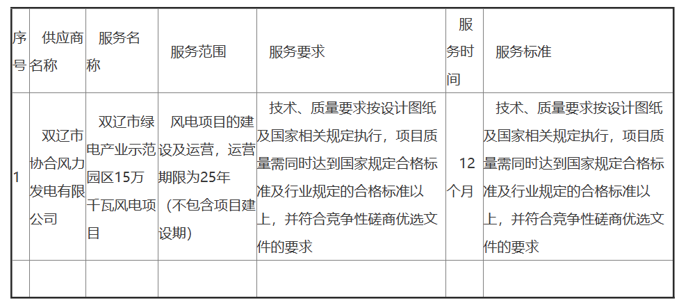 根据公示,中标人为双辽市协合风力发电有限公司,要求服务时间为12个月。
