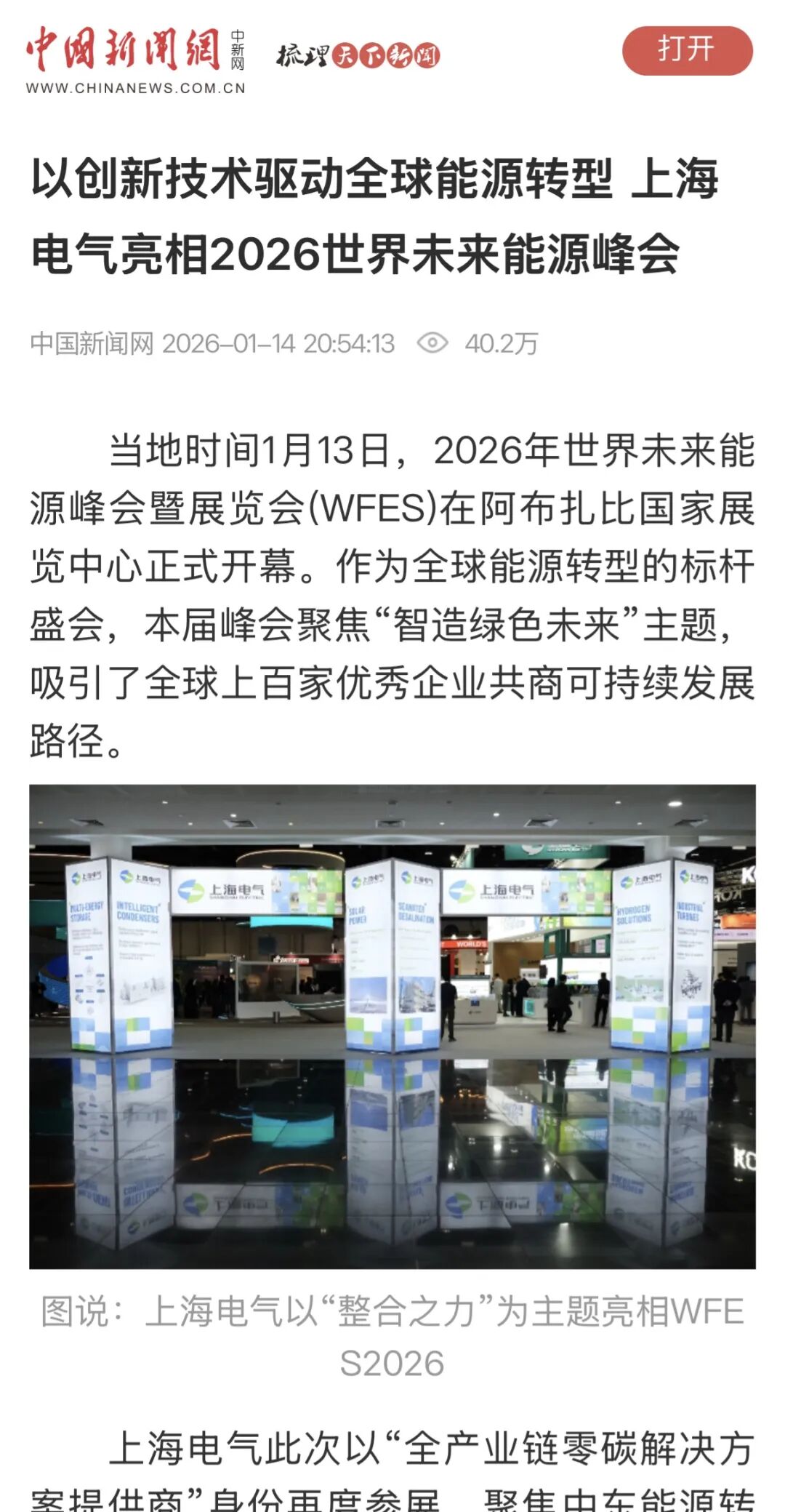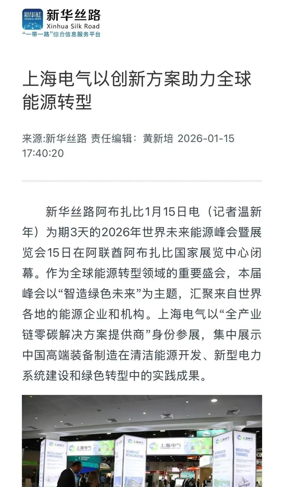 以创新技术领航全球能源转型,上海电气亮相2026世界未来能源峰会