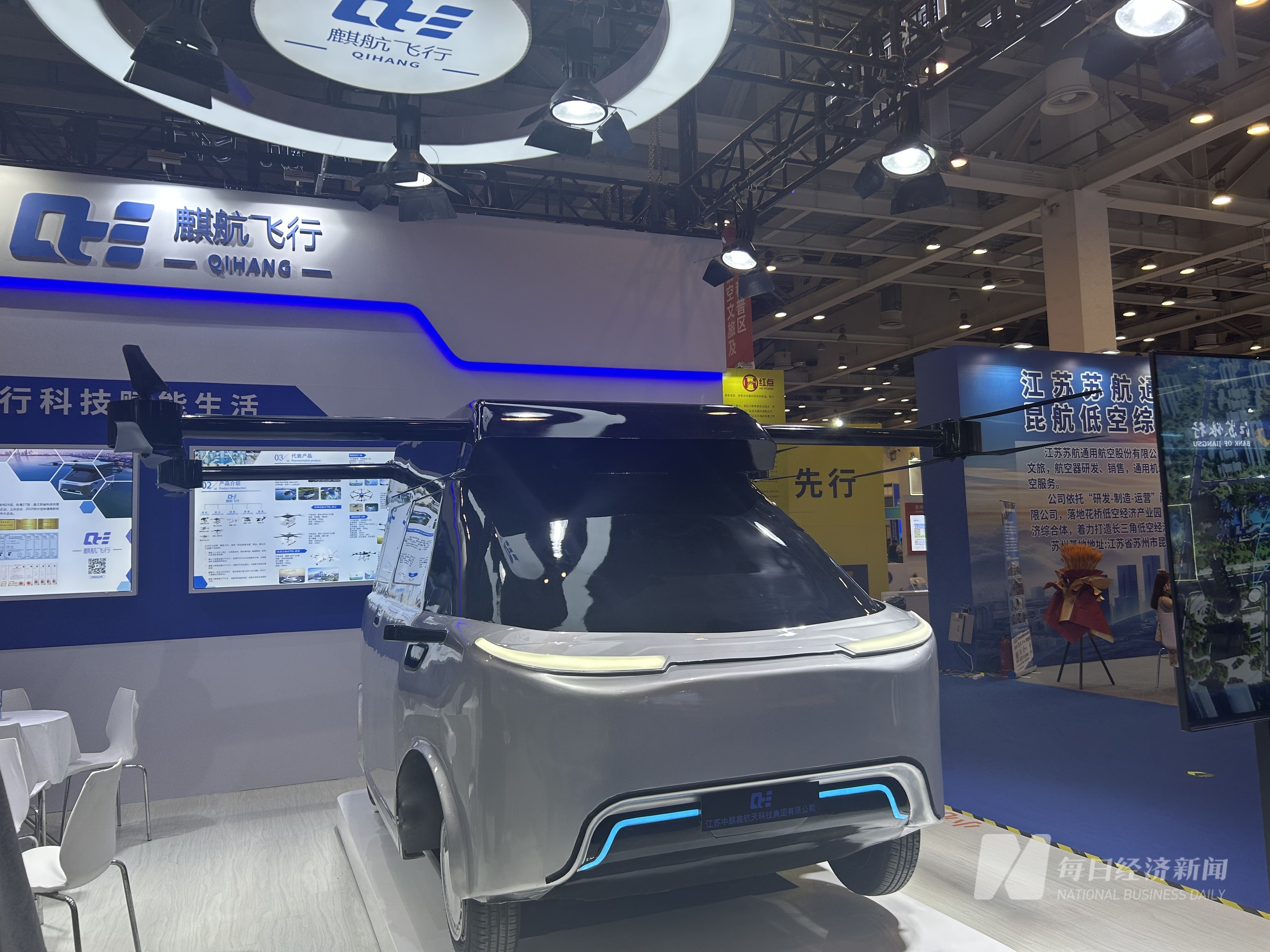 在大会现场,江苏中麒鑫航天科技集团有限公司展出的是公司自主研发设计的飞行汽车麒翼-100M。公司总经理张罗康告诉《每日经济新闻》记者,低空经济的发展需要政府部门的大力支持,在苏州相关政府部门的扶持下,公司已经建设完成3000平方米的生产基地,销售的工业无人机已从贴牌代工走向自主生产。目前,公司主要聚焦工业无人机、eVTOL飞行器及飞行汽车三大板块。