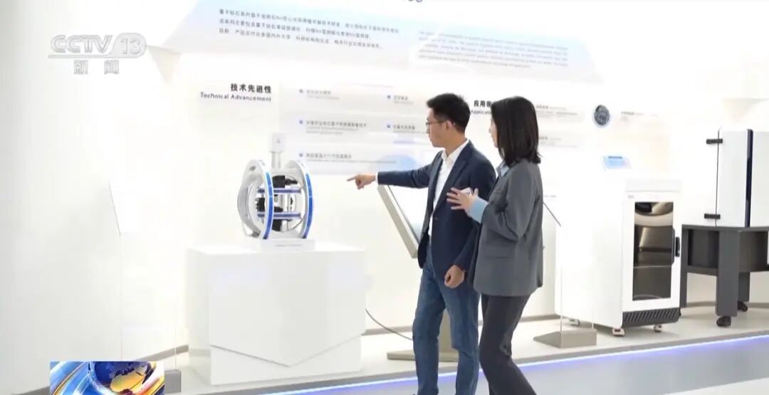 总台央视记者张丛婧:我手里拿的是一个量子精密传感器,它并不是我们肉眼所看到的元器件,而是在针尖上我们看不到的地方,它只有0.5纳米大小,相当于头发丝直径的十万分之一。