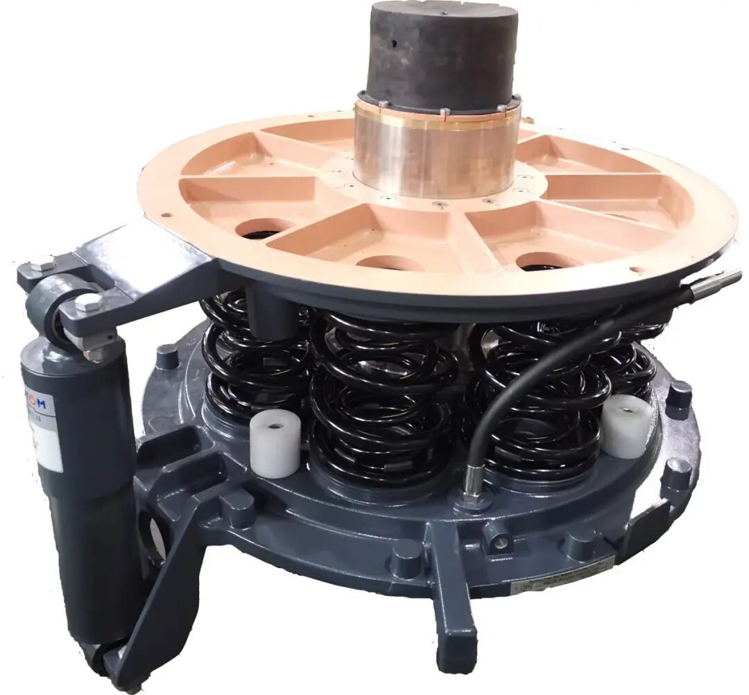 本专利原创性提出了一种具有预压导向结构的组合式应急空气弹簧,与同类技术相比,刚度降低50%以上,位移能力提升60%,三向止档结构提高了车辆限界能力,可实现轨道交通车辆无气运营不降速的行业目标。