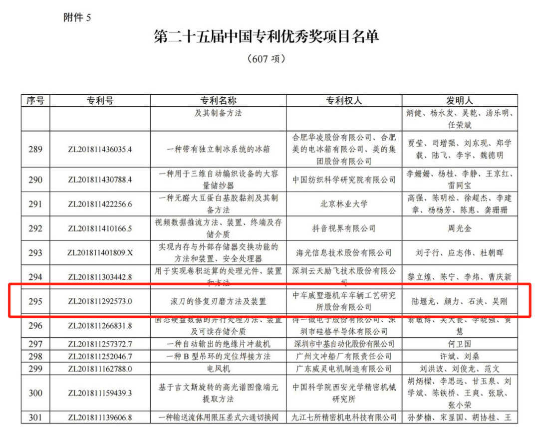 近日,国家知识产权局发布了关于第二十五届中国专利奖授奖的决定,中国中车多家子公司获奖。