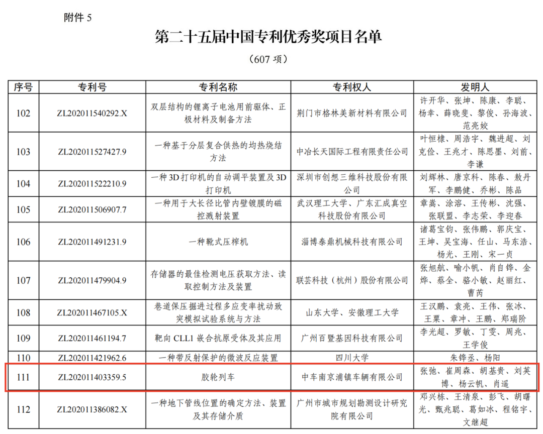 中车浦镇公司“胶轮列车”(专利号:ZL202011403359.5)