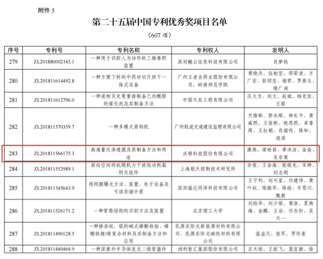 中车沃顿科技公司“高通量反渗透膜及其制备方法和用途”(专利号:ZL201811566175.3)