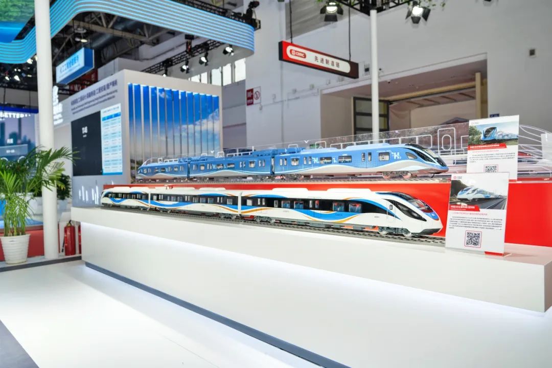 在先进制造链展区,中国中车展示的氢能源全自动市域动车组通过氢燃料电池和储能系统替代了传统的供电方式为车辆提供能量。采用全自动运行模式,最高续航里程可达1000公里以上,最高时速可达160公里,实现了全系统、全场景、多层级的性能验证,为轨道交通新能源产业发展助力。
