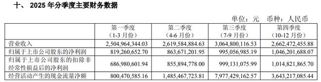 归母净利润方面,光大证券去年第四季度净利润为全年的高点,达10.46亿元。2025年前三季度的净利润分别为8.19亿元、8.64亿元和9.95亿元,整体呈现出逐季攀升的稳健态势。