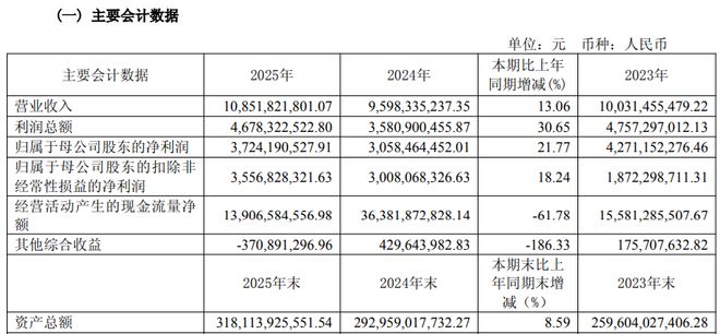 具体而言,2025年全年,光大证券实现营业收入108.52亿元,同比增加13.06%;实现归属于母公司股东的净利润(下称“归母净利润”)37.24亿元,同比增加21.77%。