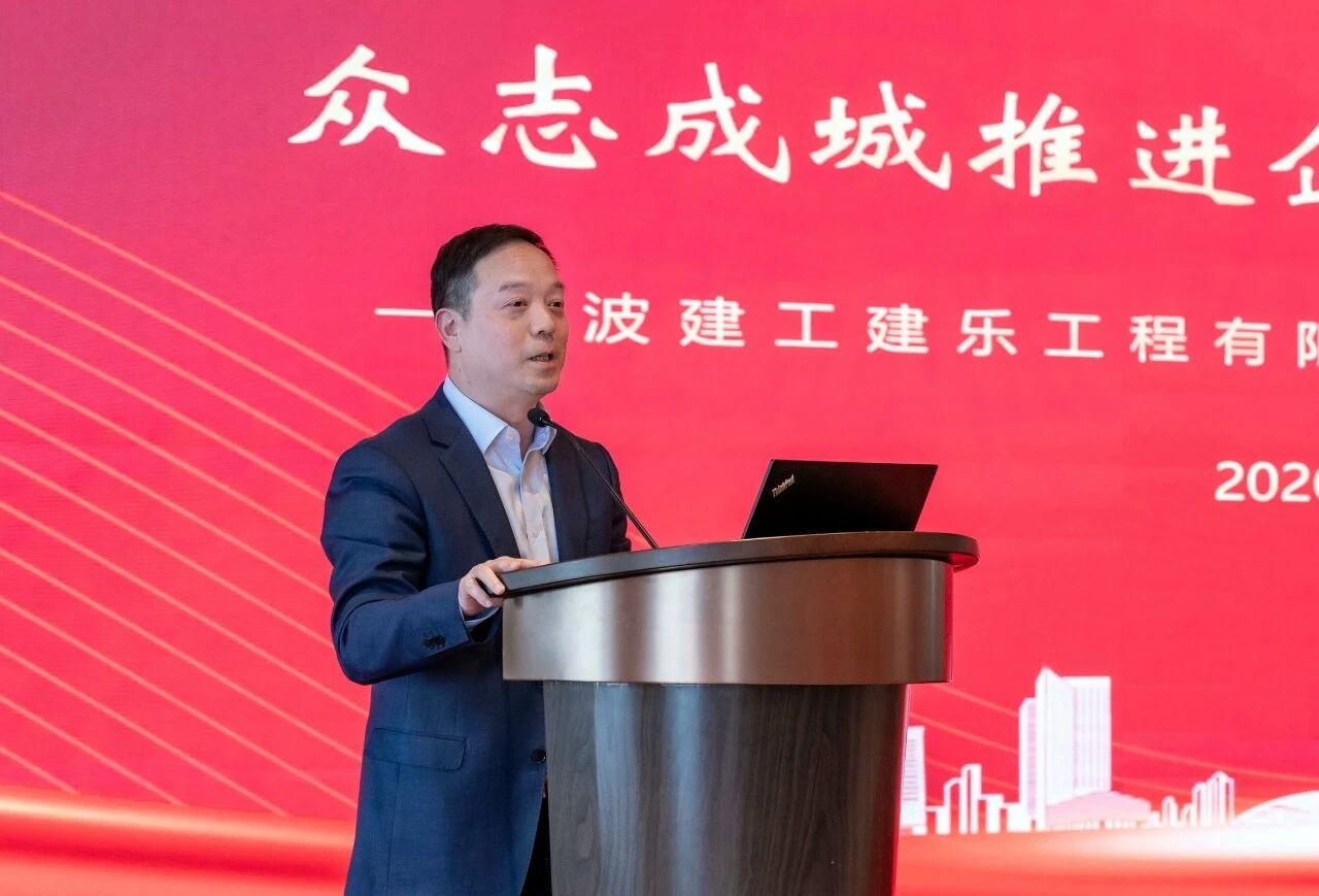 会上,建乐公司总经理潘新跃作工作报告,全面总结公司2025年发展状况,部署2026年工作任务。职能部门、幕墙分公司、装修管理团队、项目负责人代表等进行工作交流。