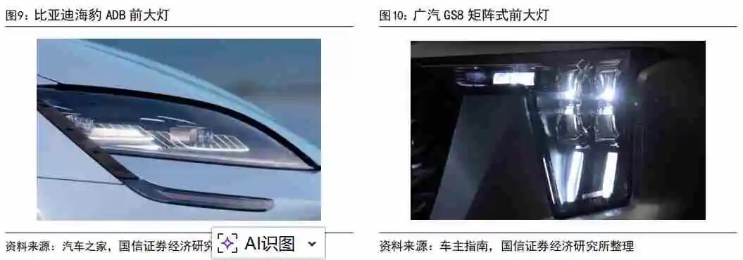 1)ADB 车灯(矩阵式LED)——中低价位车型已量产应用