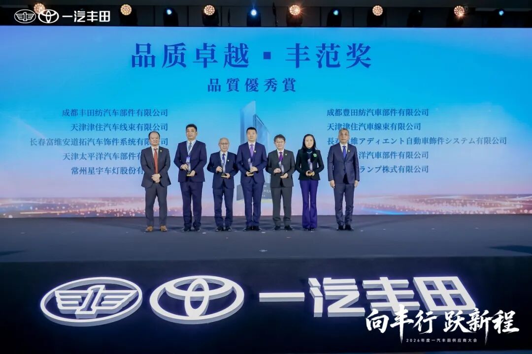 3月12日,以“向丰行跃新程”为主题的2026一汽丰田供应商大会在天津隆重召开。作为一汽丰田长期以来的重要战略合作伙伴,星宇股份董事长周晓萍受邀出席,星宇股份更凭借在产品质量、供货保障及技术创新方面的杰出贡献,荣膺“品质卓越·丰范奖”。这一奖项不仅是对星宇股份过去一年工作的高度肯定,更是双方深厚情谊与彼此信任的见证。