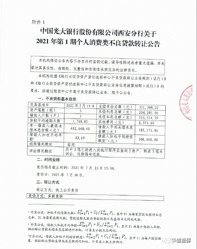 此前,光大银行西安分行已于2021年6月4日在银登中心网站对该资产包进行前期招商推介。