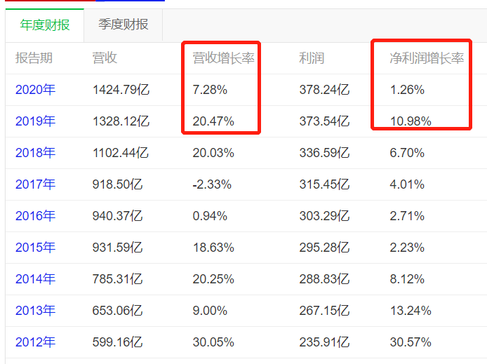 根据光大银行2020财年报告, 2020年光大银行实现营业收入1424.79亿元,营业收增长率为7.28%;归属于本行股东的净利润为378.24亿元,净利润增长率为1.26%。对比,2019年,光大银行营收和净利润的增速均大幅放缓。2019年,光大银行营业收入增长率为20.47%,净利润增长率为10.98%。