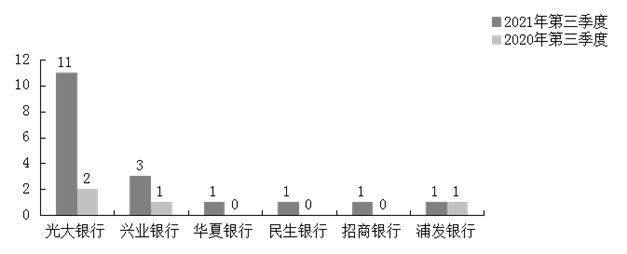 中国经济网北京12月29日讯银保监会山西银保监局网站昨日披露的2021年三季度山西省银行业消费投诉情况的通报显示,光大银行信用卡业务投诉位列山西省股份制商业银行第一。2021年第三季度,山西省股份制商业银行信用卡业务投诉的中位数为1件。其中,光大银行11件,同比增长450%,占其投诉总量的9.65%;兴业银行3件,同比增长200%,占其投诉总量的30%;华夏银行1件,占其投诉总量的50%;民生银行1件,占其投诉总量的1.79%;招商银行1件,占其投诉总量的11.11%;浦发银行1件,同比持平,占其投诉总量的11.11%。