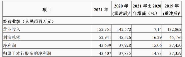 经营业绩方面,光大银行2021年实现营业收入1527.51亿元,同比增长7.14%;实现净利润436.39亿元,同比增长15.06%。