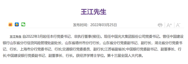 不过就在2022年3月24日,李晓鹏因工作调整已辞去光大银行董事长等职位。光大银行官网显示,光大银行党委书记已变为原建设银行行长王江。与此同时,王江已成为光大集团党委书记兼董事长。
