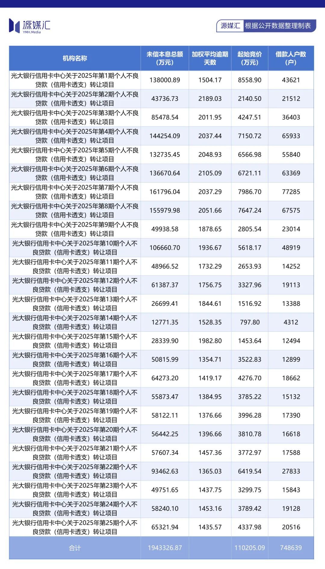 除了出售直供房之外,光大银行2025年以来还在加大剥离不良贷款的力度,尤其是个人不良贷款。