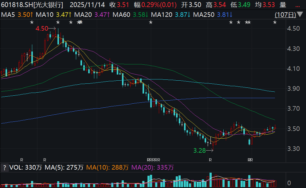 二级市场上,整个第三季度,光大银行的股价下跌17%,“领跌”A股上市股份行。股价下行可能并非短期市场波动所致,而是市场对光大银行信心崩塌的直接写照。