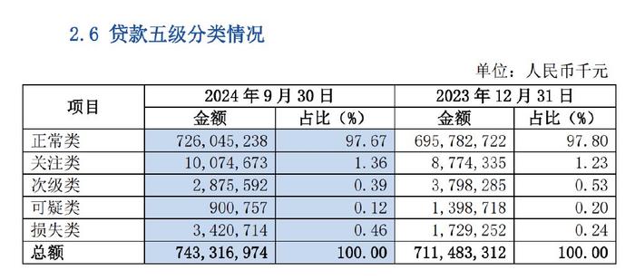 资产质量方面,截至9月末其不良贷款率为0.97%,与上年末持平。不良贷款余额为71.97亿元,较上年末增加2.71亿元,增幅3.91%,其中损失类贷款余额34.21亿元,较上年末涨16.91亿元,增幅高达97.81%。拨备覆盖率则从上年末的404.98%下滑至9月末的364.98%。拨备是应对不良贷款的“安全垫”,覆盖率下降意味着抵御风险缓冲能力削弱。