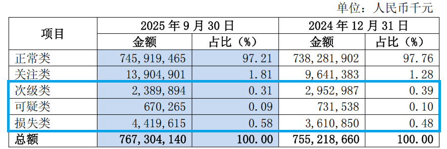 另外,沪农商行的次级类贷款从2024年末的29.53亿元降至2025年三季度末的23.90亿元,可疑类贷款从7.32亿元降至6.70亿元。