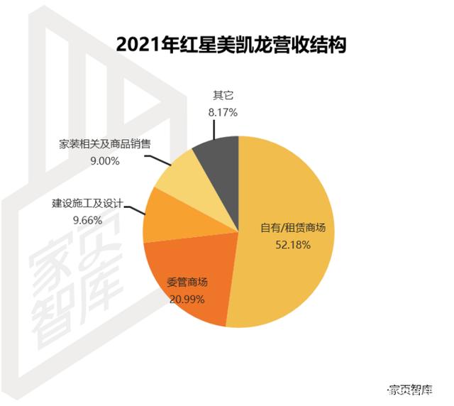 根据红星美凯龙2021年的业绩公告,其委管商场数量由2020年的273家增长至278家,委管商场平均出租率91.4%,上升0.7%。这显然就是“轻资产、重运营”的具体成果,虽然谈不上增长迅猛,好歹有所增长。