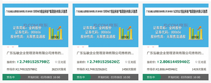 不久前,金科股份披露股东广东弘敏企业管理咨询有限公司(以下简称“广东弘敏”)所持有的4.81亿股,即将于3月8日被执行司法拍卖。4.81亿股占广东弘敏持有金科股份数量比例的100%,占金科股份总股本的9.0001%。