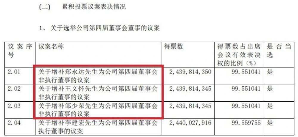 如下图,郑永达、王文怀、邹少荣当选美凯龙第四届董事会非执行董事,李建宏当选美凯龙第四届董事会执行董事。
