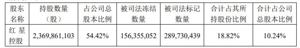 此外,杠杆游戏根据这份公告还看到,截至公告披露日,红星控股及其一致行动人涉及被司法冻结、司法标记的情况如下: