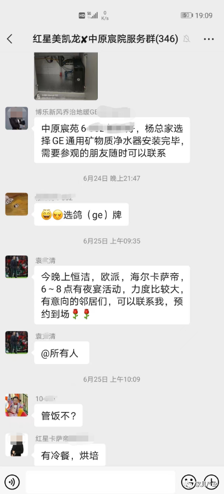 郝女士说,2022年3月,红星美凯龙在中原宸院开展3·15家装促销活动,业务员袁某清邀请业主进入团购群了解活动内容,还通过红星美凯龙在淘宝平台上的直播间为融创系列小区做了专场直播,随后又带领业主参加各品牌的线下活动。