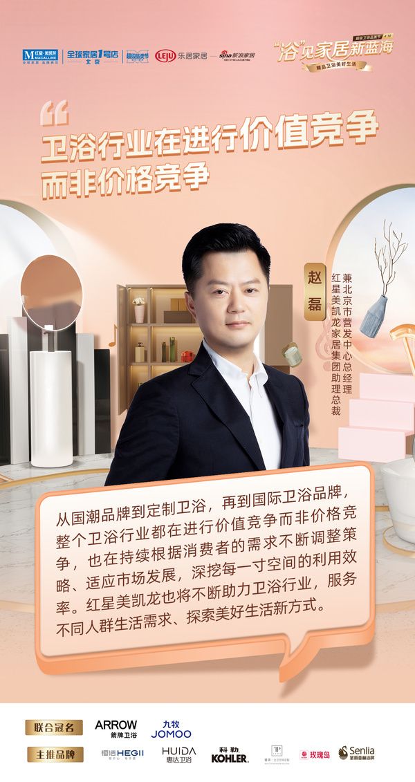 ?4月19日下午,红星美凯龙北京全球家居1号店卫浴品类节顺利举办。本次活动上,红星美凯龙家居集团助理总裁兼北京市营发中心总经理赵磊、广东省卫商会秘书长兼新卫浴网创始人兼中国卫浴报创刊人张书儒、红星美凯龙卫浴瓷砖顶墙事业部总经理常成、红星美凯龙北京全球家居1号店总经理廖金波、箭牌北区销售总监韩泽龙、九牧卫浴全国KA总监杨一凯、恒洁卫浴全国KA总监刘良雄、惠达北京分公司总经理张金秀、科勒全国KA经理卢伟荣、圣莉亚总裁张鹏、缇派卫浴市场部总监崔莹、玫瑰岛总裁助理兼全国渠道总监陈姣及新浪家居全国总编王晶共聚一堂,开展了以《“浴”见家居新蓝海》为主题的论坛,探讨卫浴品牌扩圈向外的跃升动力,解读消费背后市场信心的恢复,同时共同探讨如何广泛有效地触达终端、共筑美好生活。