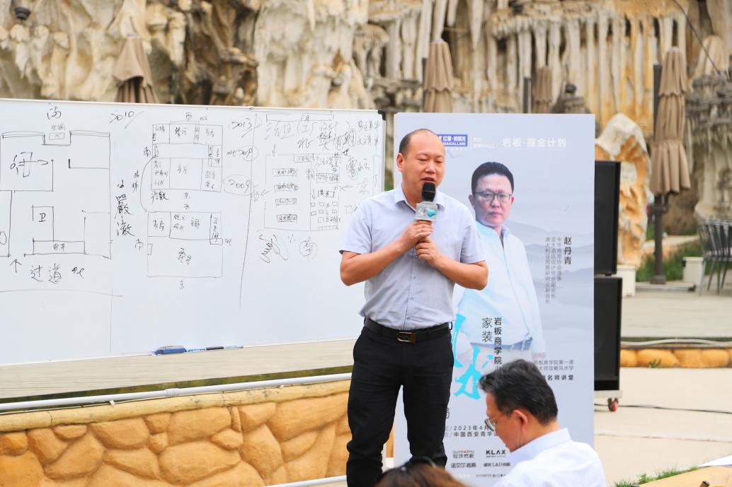 开课仪式的最后环节,红星美凯龙瓷砖卫浴事业部招商总监贾恒极带来发言。他以事实数据为论据强调,岩板近年来已经成为具有极大发展空间的瓷砖品类。国内大部分岩板品牌目前从产品到设计都已经达到了国内领先、甚至与国际齐平的水平,但在“最后一公里”的交付阶段仍存在薄弱。最后的消费、交付阶段依靠的是与行业终端的有效链接以及品牌文化属性的输出,因此成立“岩板商学院”就是希望给品牌赋能之外也能够为经销商、设计师提供抓手,更好地把这个品类推广到消费者层面,让他们认可岩板品质、认可岩板品牌。
