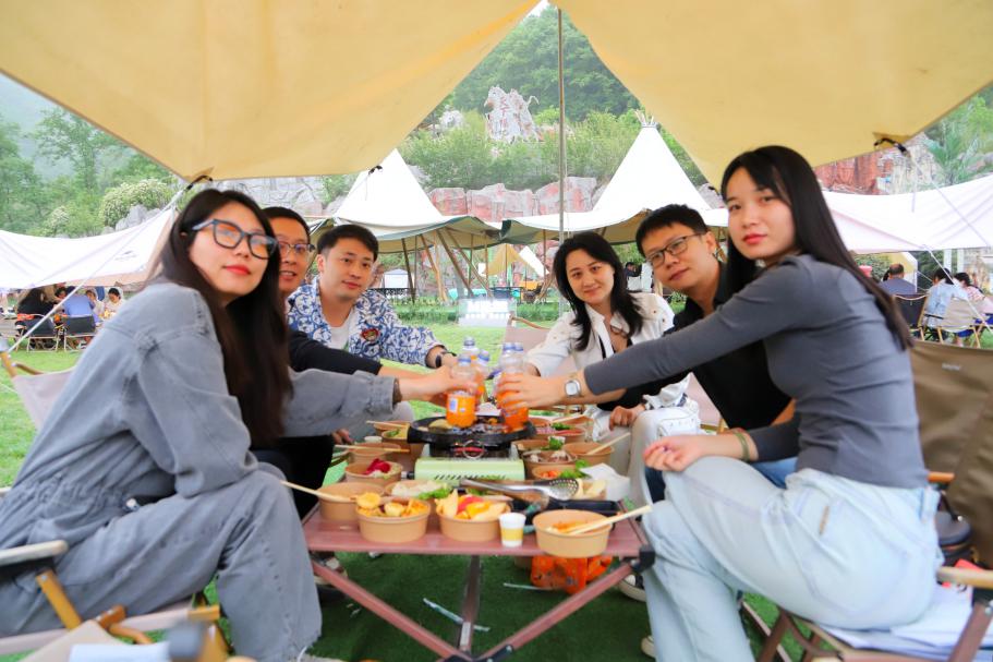 当日晚宴在开阔的室外露营场地进行。嘉宾们围炉而席享受美食,在热情亲切的氛围中自由交流讨论,并再次表达了对于红星美凯龙岩板商学院本次活动的感谢,以及对于未来更多课程活动的期待。
