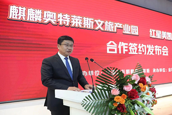 县委常委、副县长陈伟代表县委、县政府致辞,他表示,红星美凯龙集团与鸡东麒麟奥特莱斯文旅产业园的成功签约,是先进商业理念的相得益彰,是现代生活方式的智慧引领,是如虎添翼的产业升级跨越,更是双方互相信任、共谋发展的成果。作为项目所在地、企业服务员、发展受益者,鸡东县委县政府将以最优的营商环境,更加开放的胸怀和更加积极的姿态,拿出最大诚意、提供最优服务、营造最优环境,共享机遇、共筑梦想、共创未来。