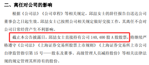 根据公告披露,截至2025年9月16日,邱喆女士持有公司股份140,400股。按照美凯龙9月19日收盘价2.97元/股计算,邱喆女士持股市值约41.7万元。