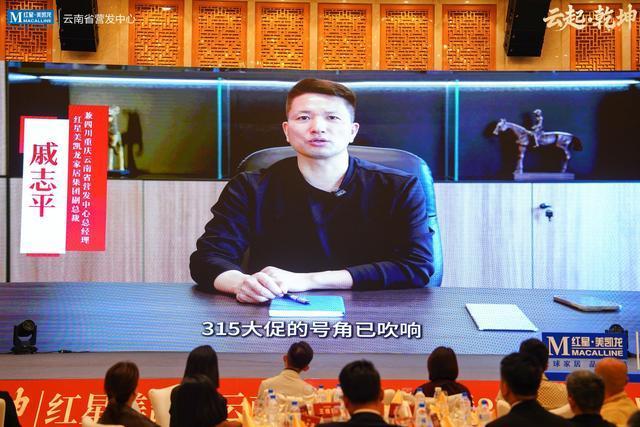 活动现场,红星美凯龙家居集团副总裁兼四川重庆云南省营发中心总经理戚志平通过云端视频致辞,他指出,2026年是云南家居市场重振信心、重塑格局的关键之年,也是红星美凯龙与合作伙伴凝心聚力、并肩破局的攻坚之年。开年即决战,要以本次发布的“昆明同城战略”为抓手,锻造硬核营销团队,狠抓执行与蓄客攻坚,确保全省步调一致。同时,他呼吁全体商户伙伴深度携手,提振参与热情,凝聚最强共识,以实干破局、以同心共赢,共同构筑合作新生态,再创滇峰佳绩。