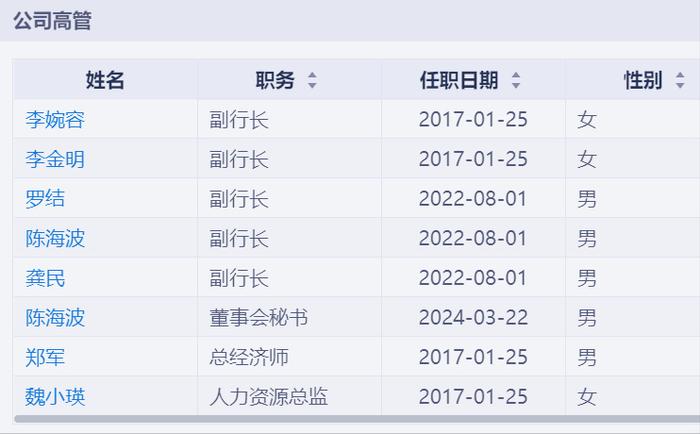 上述高管中,最年轻的是陈海波出生于1979年,其次是罗结,1970年。郑军和魏小瑛分别是1964年、1965年进入退休年龄的阶段。