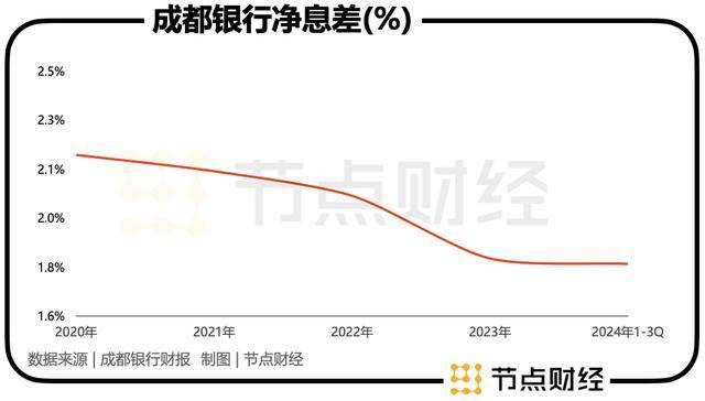 拉长视线看,2020年-2023年,成都银行的净息差从2.19%跌到1.81%,再到2024年前三季度约1.79%,划出的是一条向下的曲线。